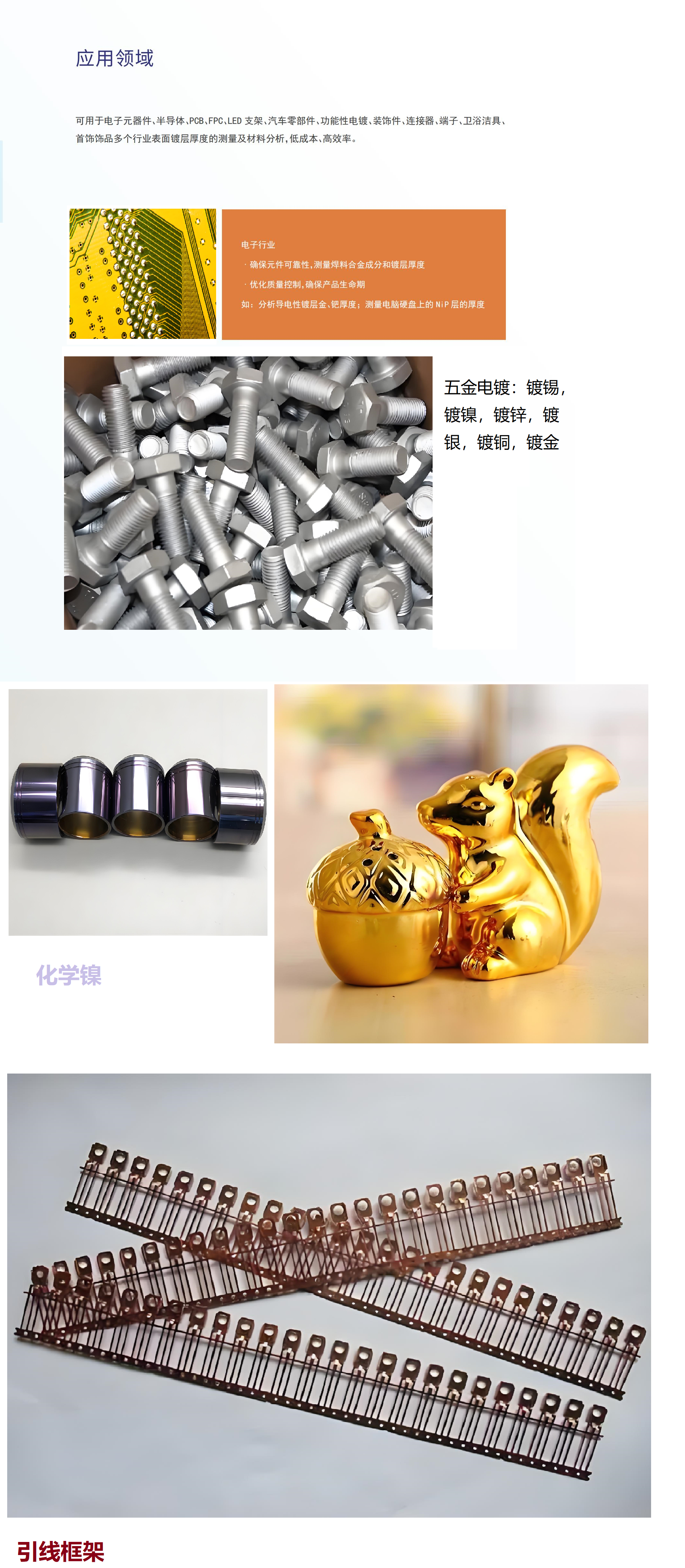 电子电镀、PCB制造、珠宝质检、汽车零部件、航空航天等
